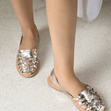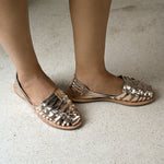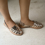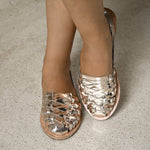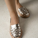 Handcrafted slides in shades of Gold and silver, designed for those who want to wander and explore new sights. Comfortable Butterfly flats with the perfect grip and easy to walk in all day long. Best companion for your everyday comfort.