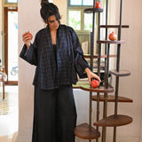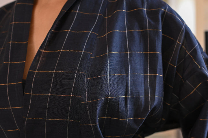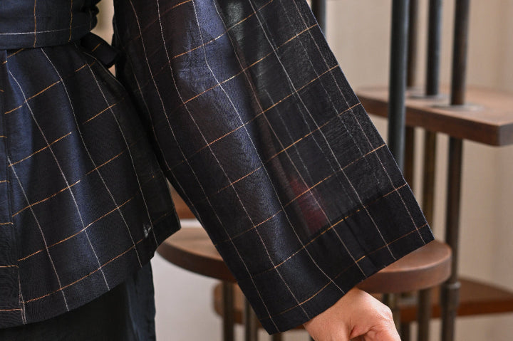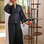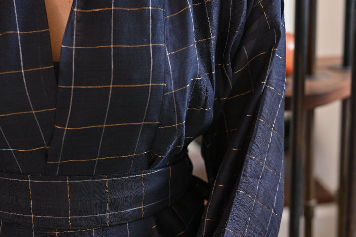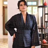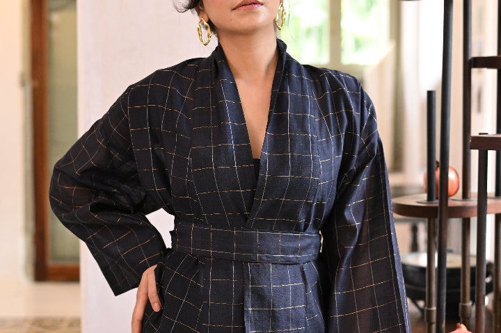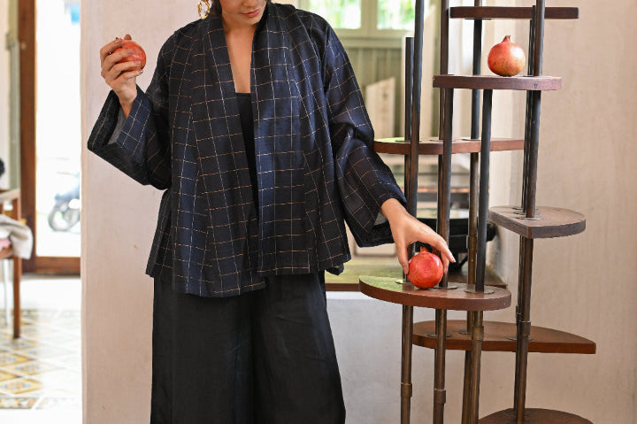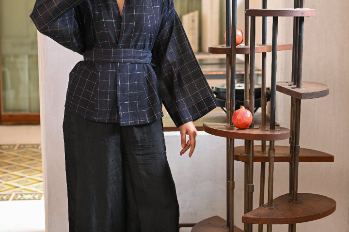 A classic reimagined; the fluidity of customized handwoven silk, the structure of a wrap jacket, and the freedom to style it your way. Wear it with the belt or open as a layering cape for an effortlessly undone look. One piece, endless possibilities