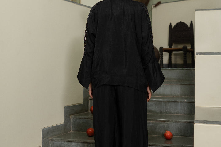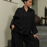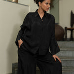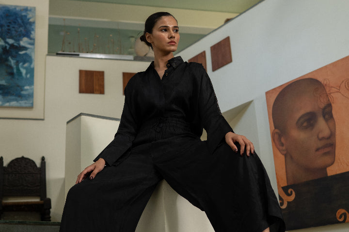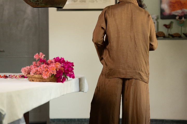 * Can be paired with our Silk Shirt - The relaxed-fit top features badla details along the collar, sleeves, and pockets, small glimmers that catch the light subtly