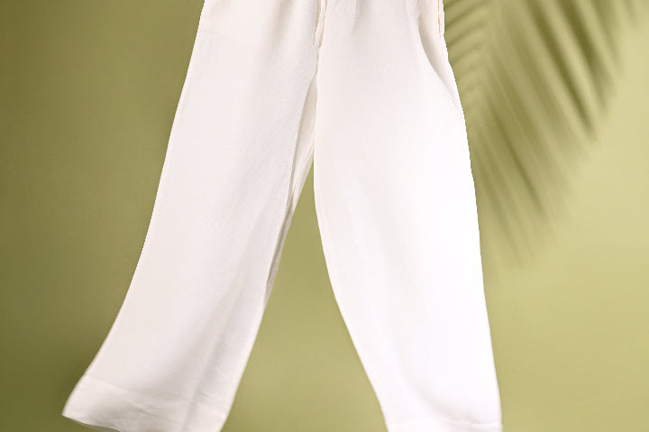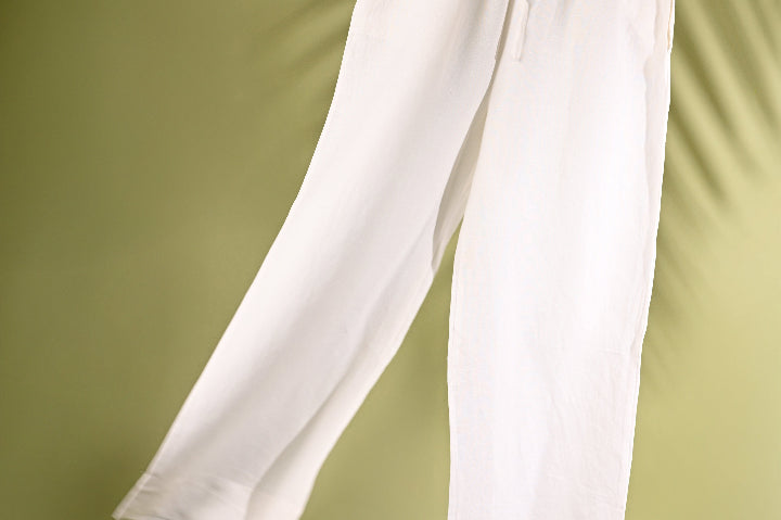 An anchor for any outfit with pockets; tailored but relaxed, structured yet breathable. These pants ground the collection, allowing printed pieces to shine while holding their own as a wardrobe essential.